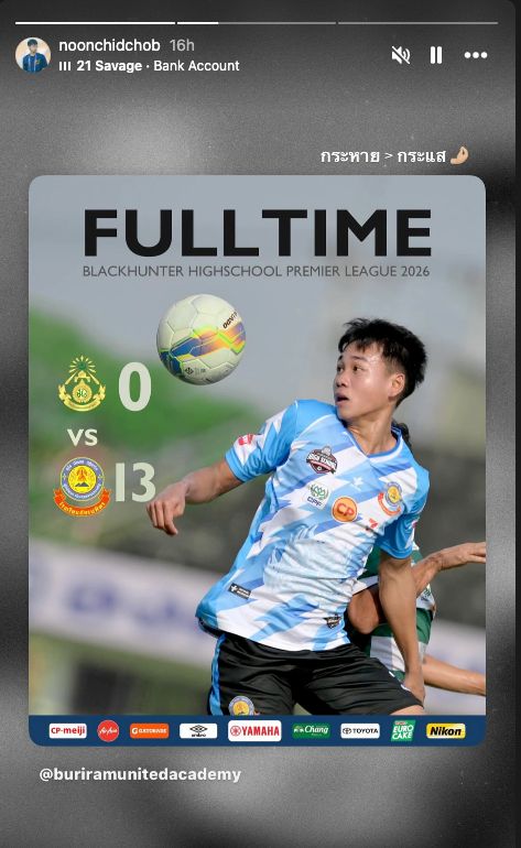 However, "Noon" Channachon Chidchob, son of Newin Chidchob, chairman of Buriram United, who previously led Phattharaphon to win the 7-Color Football Championship in 2025, posted a message after this match victory.