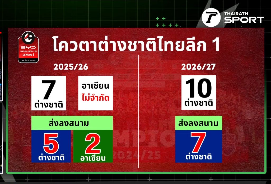 However, the new quota planned for the 2026/27 season will allow registration of up to 10 foreign players by eliminating a separate ASEAN quota and counting all as 'foreign players,' while still permitting a maximum of 7 foreign players on the field as before.