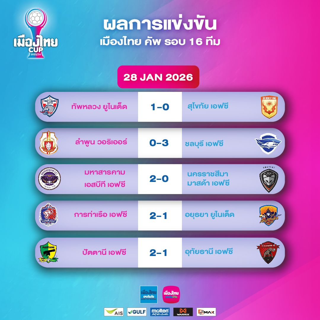 Summary of the "Muang Thai Cup" 2025/26 Round of 16 results on Wednesday, 28 January 2026 GMT+7.