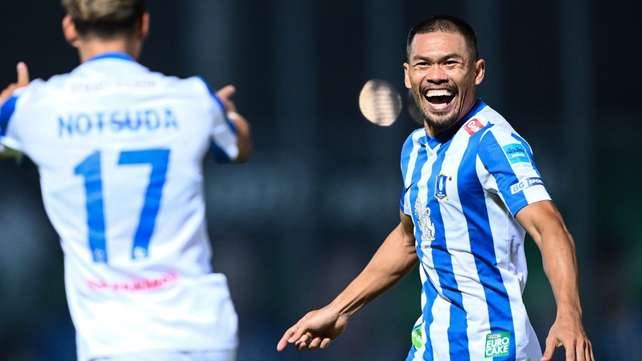 Fast forward to today, 8 April 2026, at Chonburi Daikin Stadium in the 2025-26 Muang Thai Cup semifinals, the same script played out again! Surachart, now a veteran but still sharp, leapt to head firmly in the 49th minute, sending the ball into the net to give BG Pathum United a 1-0 lead. That goal proved decisive, knocking the “Thunder Castle” out of the semifinals.