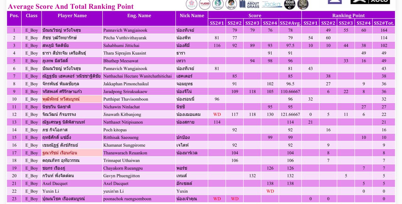 The Thailand Junior World Tour (Season 2) still has three events left: